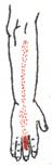 - Primary: The pain extends down the dorsum of the forearm, the wrist and the hand including the middle finger. Occasionally it may cause pain on the volar side of the wrist.